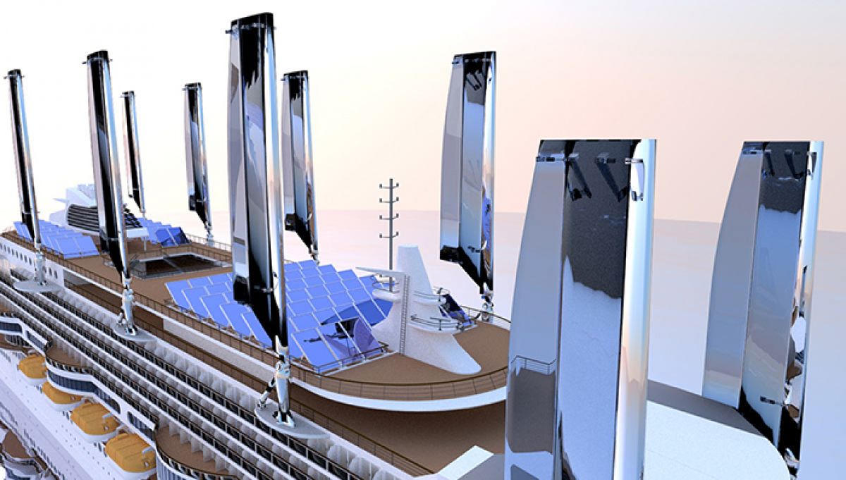 His exterior design, inspired by the silhouette of a whale, includes 10 big retractable sails in his top cover, formed by solar panels that will supply energy to the ship. The cruise ship of about 55.000 tons will have space for more than thousand passengers and could start to be used in 2020.
